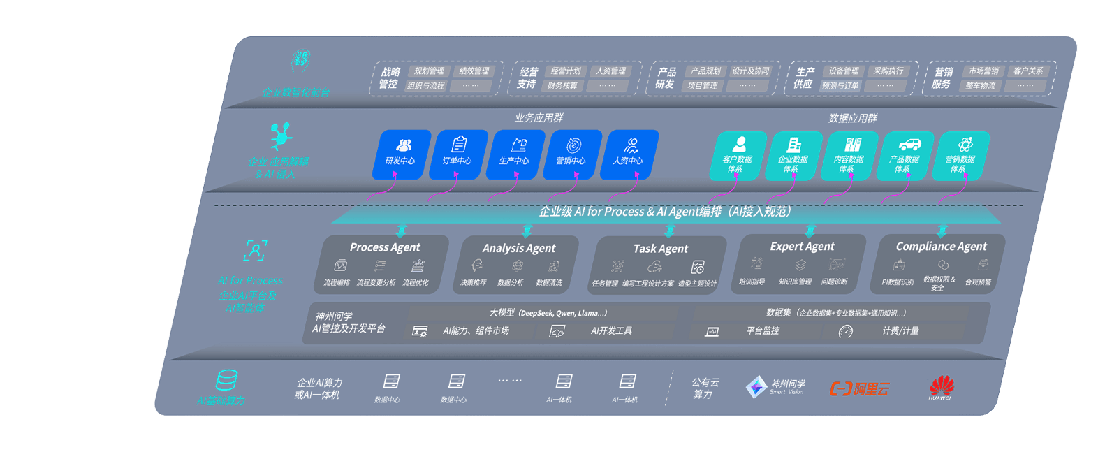 端到端的一站式AI工作空间深度融合了从企业战略规划到日常经营的全流程业务板块,,,定向解决车企内部领域多、、、部门多、、、链条长、、、场景碎片化等难题,,,,支持车企快速构建以AI为核心的生产力写作体系,,,,实现任务执行与AI能力的无缝集成与交互