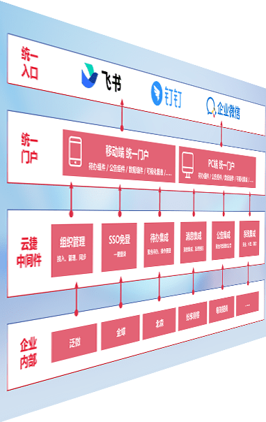 对协作平台提供支持服务,,,,支持企业应用与协作平台对接,,包含组织同步、、、、消息集成、、待办集成等。。。。支持目前主流的协作平台:钉钉、、、企微和飞书。。
